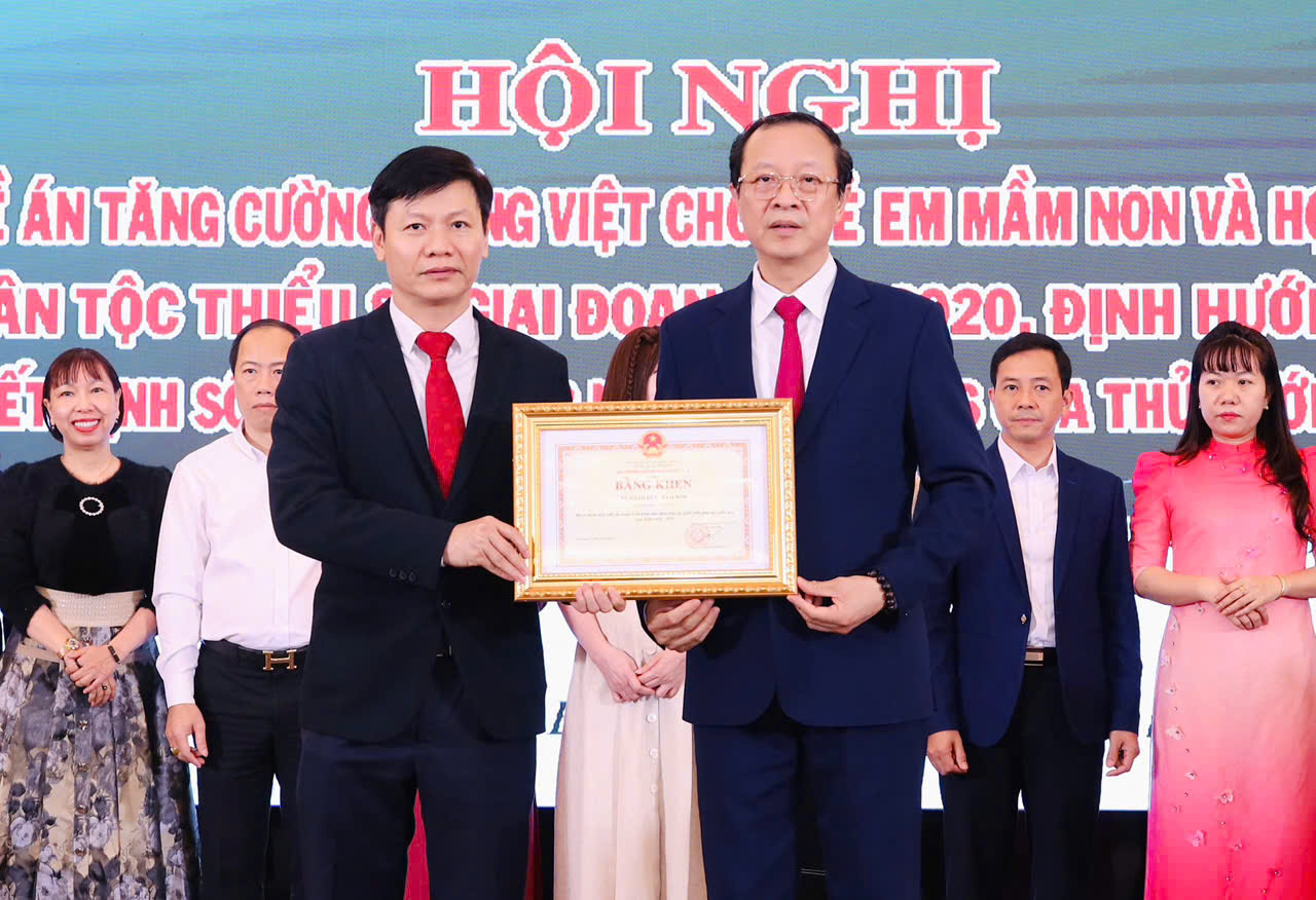 Tại hội nghị, Thứ trưởng Thường trực Phạm Ngọc Thưởng cũng đã trao tặng Bằng khen của Bộ trưởng Bộ GDĐT cho các cá nhân, tập thể có thành tích xuất sắc trong triển khai thực hiện Đề án.